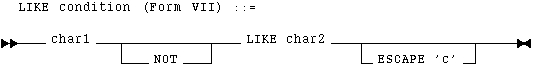 While the equal (=) operator exactly matches one character value to another, the LIKE operator matches a portion of one character value to another by searching the first value for the pattern specified by the second. Note that blank padding is not used for LIKE comparisons.